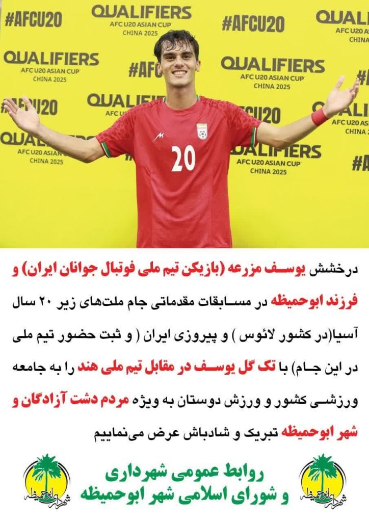 تجلیل شهردار ابوحمیظه از یوسف مزرعه بازیکن تیم ملی فوتبال جوانان ایران