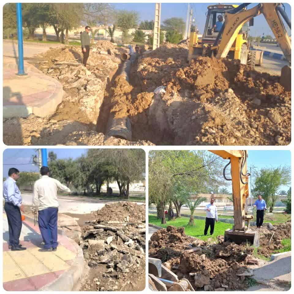 اتمام عملیات لوله گذاری جهت جمع آوری هدایت و دفع آبهای سطحی خیابان تعاون و محور ورودی شهر (چهارشنبه۲۲اسفند ماه۱۴۰۳)