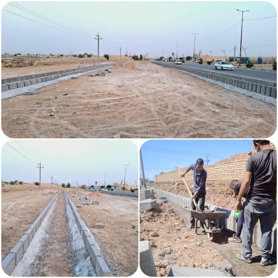 ادامه عملیات جدول گذاری نوار فضای سبز ورودی شهر از سمت سوسنگرد