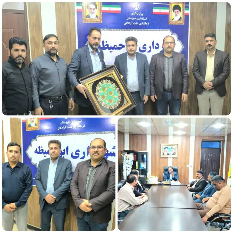 حضور اعضای شورای اسلامی شهر ابوحمیظه در دفتر شهرداری بهمراه پرسنل جهت عرض تبریک و تقدیر از شهردار ابوحمیظه مهندس سیدحسین نوری به مناسبت ۲۵ اسفند (روز شهردار)