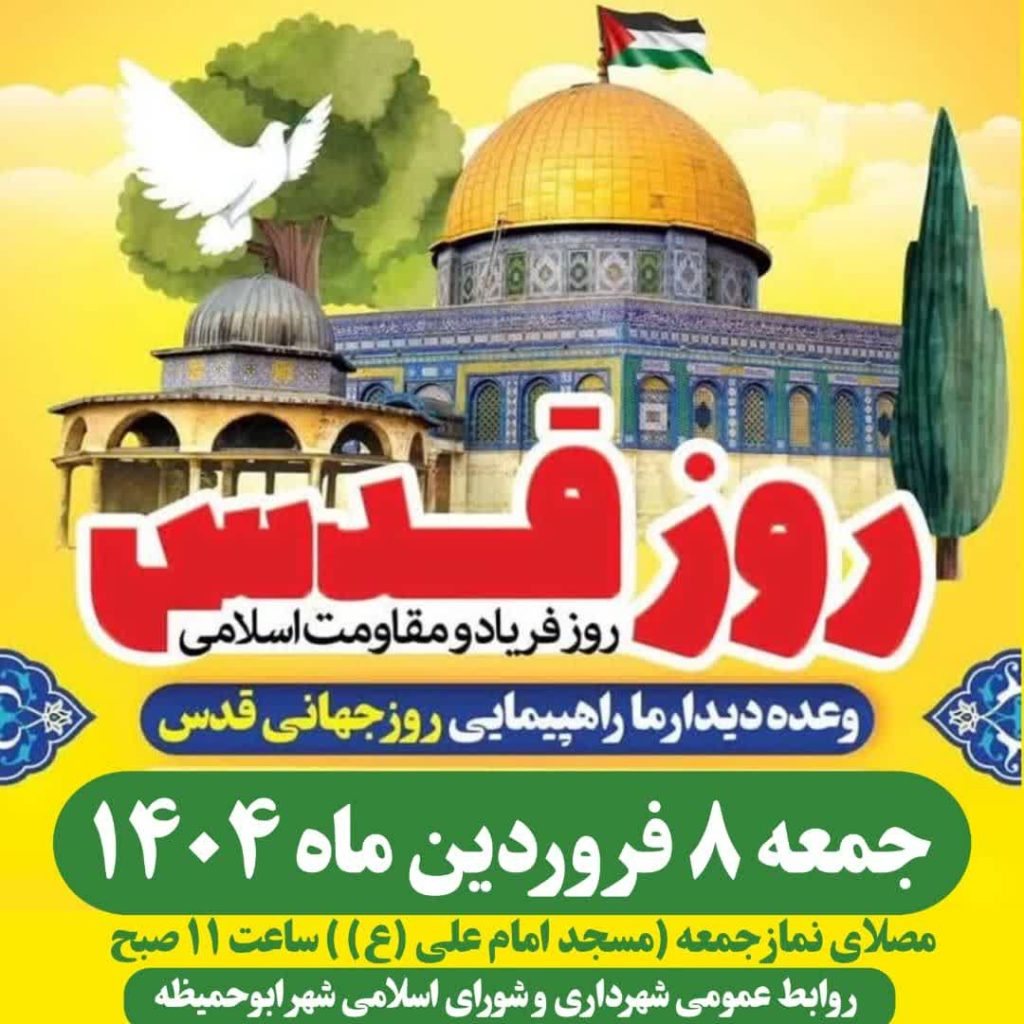 هم اکنون حضور شهردار ابوحمیظه مهندس سید حسین نوری و اعضای شورای اسلامی شهر در مصلی جمعه و مراسم روز قدس (جمعه ۸فروردین ماه۱۴۰۴)