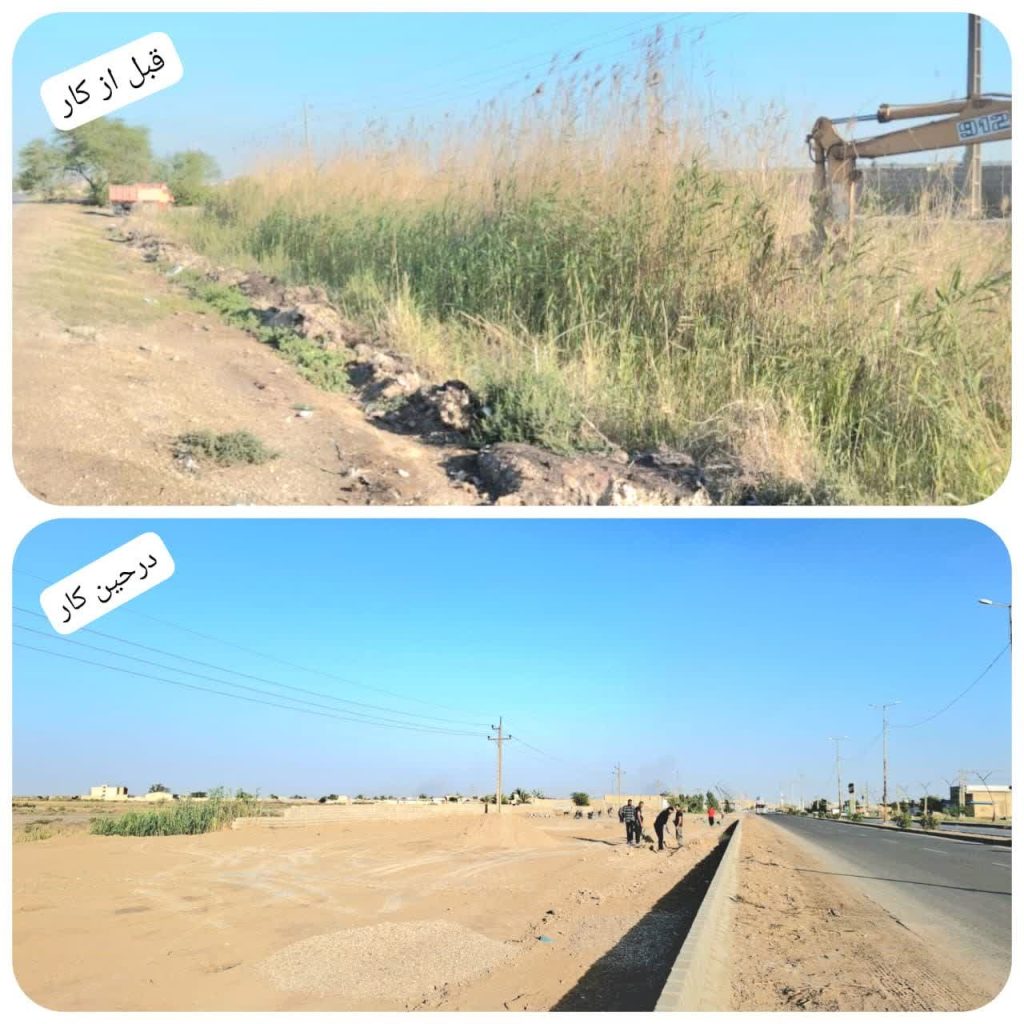 تکمیل جوی جدول انتهای خیابان انقلاب آکس بندی فرعی هجرت جهت اجرای جوی جدول جن برداری و برداشت نیزارهای نهر سنتی جنب فروشگاه تعاونی توسط واحد خدمات شهری شروع بکار جدول گذاری نوار فضای سبز ورودی شهر از سمت سوسنگرد سه شنبه۱۶ اردیبهشت ماه۱۴۰۴