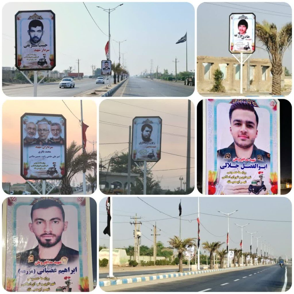 مزین کردن آیلند ورودی شهر با تصاویر جدید شهدا  توسط شهرداری ابوحمیظه