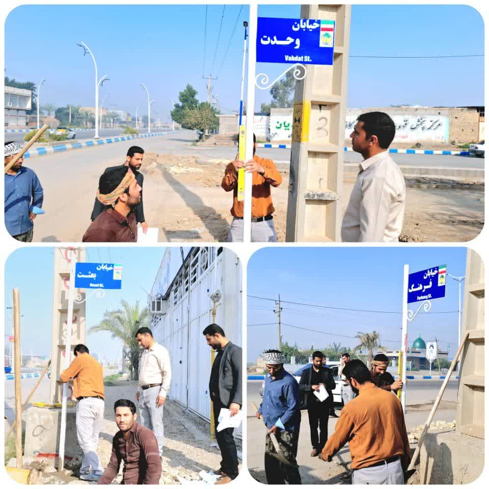 شروع نصب تابلوهای نامگذاری خیابانها و معابر شهری توسط شهرداری ابوحمیظه فروردین ماه۱۴۰۴