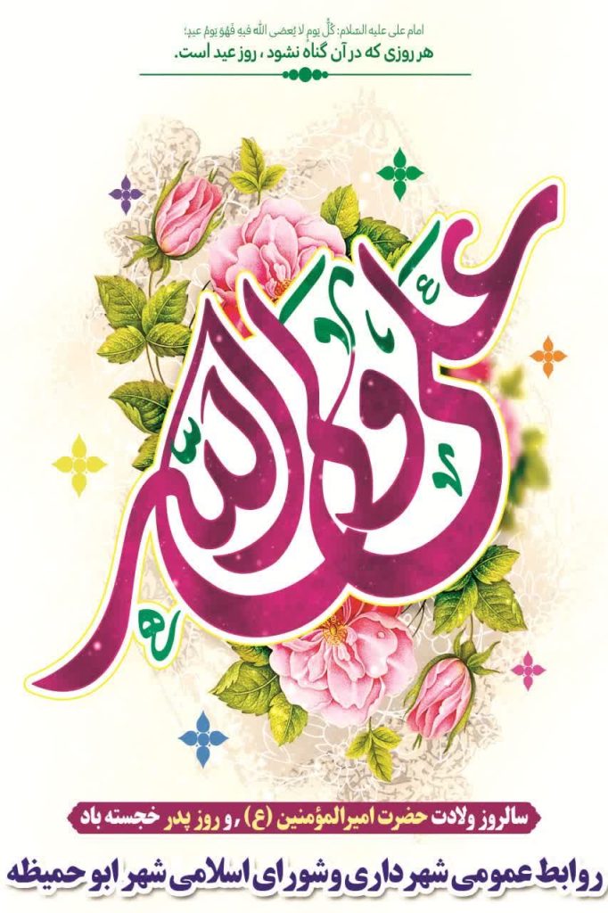 فرا رسیدن ۱۳ رجب سالروز ولادت مولا الموحدین، امیرالمومنین، بزرگ مرد عدالت و معنویت، مظهر شجاعت و انسانیت و روز پدر را صمیمانه به همه پدران فداکار بویژه پدران بزرگوار این شهر و همچنین کارکنان شهرداری ابوحمیظه، تبریک و تهنیت عرض نموده و برای همه عزیزان آرزوی سلامتی داریم.