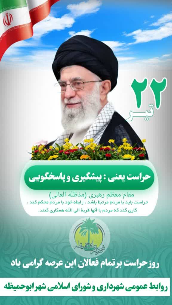 پیام تبریک شهردار ابوحمیظه مهندس سید حسین نوری و اعضای شورای اسلامی شهر به مناسبت روز حراست