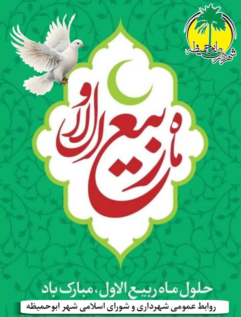 ماه ربیع الاول؛ ماه شکفتن جوانه های تبسم بر چهره دوستداران نبوت و امامت و ولایت است. بی شک بهار ماه ها ربیع الاول است ؛ چرا که آثار رحمت الهی و ذخایر برکات خداوندی در این ماه پدیدار می شود و انوار جمال الهی بر زمین و زمینیان می تابد. ما حلول ماه ربیع الاول را به تمام مسلمانان بویژه مردم ولایی شهر ابوحمیظه تبریک و تهنیت عرض می نماییم. امید است که در این ماه عزیز و در سایه تأسی به سیره نبوی و شجره طیبه امامت و بهره مندی از تعالیم ارزشمند دین مبین اسلام شاهد تقویت وحدت و همدلی ، پیروزی و سرافرازی مسلمانان و برقراری صلح و عدالت در گوشه و کنار جهان باشیم.