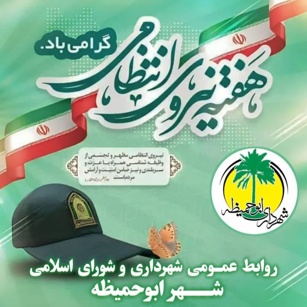 اینجانب ۱۳ مهر آغاز هفته نیروی انتظامی را به کلیه ی نیروهای نظامی و انتظامی ایران زمین، فرماندهی محترم نیروی انتظامی شهرستان دشت آزادگان و همکاران ایشان ،بویژه عزیزان ما در شهر شهیدپرور ابوحمیظه تبریک و تهنیت عرض مینمایم.
