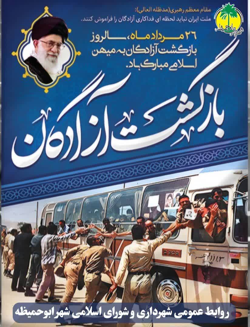 پیام شهردارو اعضای شورای اسلامی شهر ابوحمیظه به مناسبت ۲۶مرداد سالروز بازگشت آزادگان سرافراز به میهن اسلامی