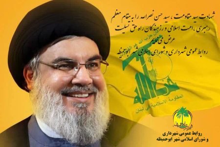 بسم رب الشهداء و الصدیقین ولا تحسبن الذین قتلوا فی سبیلالله أمواتاً بل أحیاءٌ عند ربهم یرزقون ضایعه دردناک شهادت سید مقاومت ،سید حسن نصرالله و جمعی از فرماندهان مقاومت را به مقام معظم رهبری ،امت اسلامی و رزمندگان راه حق تسلیت عرض مینماییم. شهید سید حسن نصر الله همواره سمبل مقاومت و ایستادگی در […]
